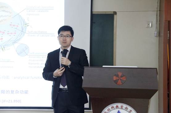 陈林峰博士后首先讲述了仿生功能材料研究方向,其主要方向是仿生矿化,可控释放体系,仿生功能材料,软体器件与其它方向接触带电,原子重构,纳米颗粒自组装等方向。进而讲述了仿生功能材料功能,从细胞的智能性门控开关功能可应用于治疗癌症,到软体材料的抓握功能应用于人工智能材料模型等等方面。