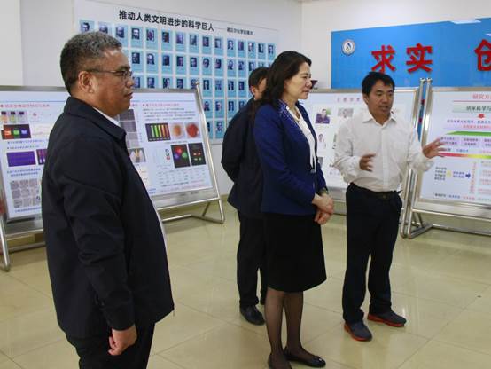 4月18日下午,霍金花副省长带领省政府办公厅、省教育厅负责人,在校领导卢克平、宋纯鹏、许绍康、孙君健、杨中华、孙功奇的陪同下,莅临特种功能材料重点实验室/高效显示与照明技术国家地方联合工程研究中心指导工作。实验室常务副主任杜祖亮、重点科研机构党委书记张霖、实验室副主任白锋、国家优青程纲等接待了霍金花一行。