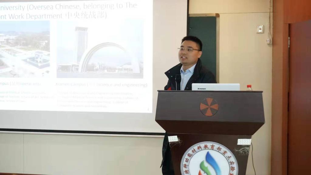 2019年12月18日上午,应特种功能材料重点实验室邀请,华侨大学魏展画教授莅临实验室进行学术交流,并进行题为“钙钛矿材料的缺陷态密度调控及其高效光电器件的构建”的学术报告。本次报告会由特种功能材料重点实验室武四新教授主持,学校相关领域的老师和学生参加了此次报告会。