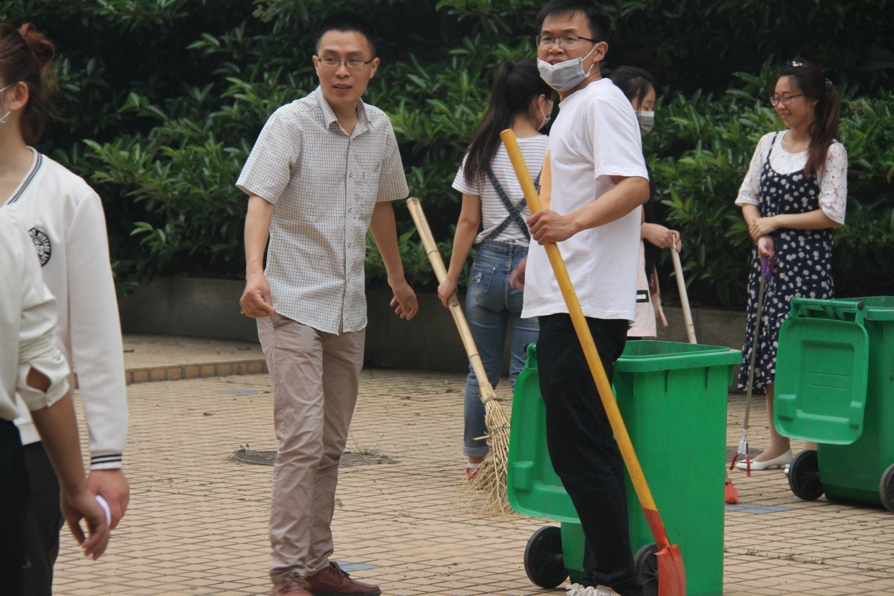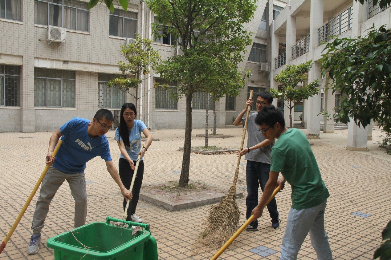 随着“劳动月”的到来,为了培养学生的劳动意识,同时也为了践行团中央“一学一做”学习教育,2017年5月11日上午,特种功能材料重点实验室研究生从身边小事做起,在研究生辅导员杨坤鹏的带领下,开展实验室清洁区卫生大清理活动。大家携带各种工具,分工明确,齐心协力,快速、高质地完成了任务。重点清扫了实验室周边的白色垃圾和实验室楼后树丛花坛的落叶,还实验室一片红娇绿浓。