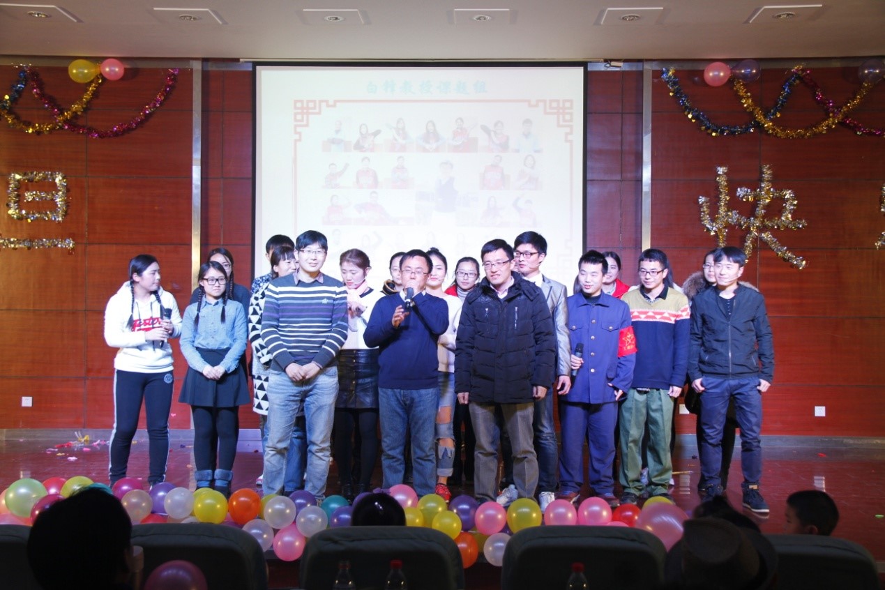实验室的老师们也毫不逊色。且不说一度把联欢会推向高潮的两首合唱,单单是青年教师四人组幽默风趣的《三句半》就令全场沸腾。联欢会中间穿插的各种小游戏也极尽搞笑之能事,台上台下互动频繁,体现了实验室欢乐一家亲。平时严肃认真的老师们玩起抢凳子游戏,让人见到了专业能力出众的精英教授们平易近人、欢乐可亲的一面。实验室特有的、同学们最爱的微信上墙抽奖活动更是让联欢会高潮迭起、惊喜连连。
