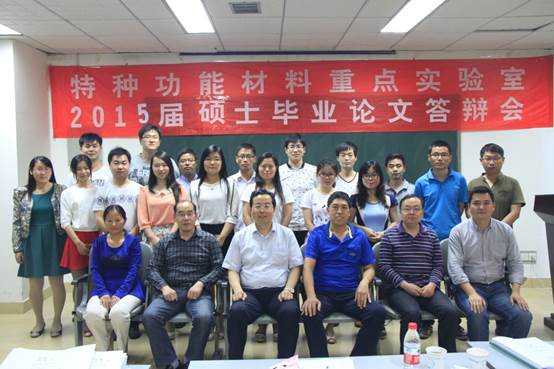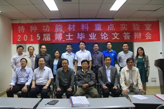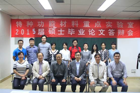 5月15、16日特种功能材料重点实验举行2015届研究生毕业论文答辩会,答辩会分为三楼学术报告厅、二楼学术报告厅两个会场。参加此次答辩会的校外专家有北京理工大学邹炳锁教授、郑州大学李新建教授、李中军教授、河南师范大学杨宗献教授及河南大学特种功能材料重点实验室的部分专家、教授,实验室全体导师及研究生参加了答辩会。