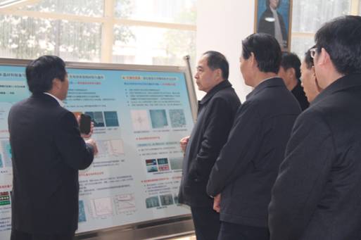 随后,尹书记一行参观是实验室筹建初期建立的LB膜实验室和目前居于国际先进水平的纳米压印实验室。尹书记对实验室的建设给予高度的评价。他鼓励实验室科研人员再接再厉,解决河南发展中面临的能源、材料等领域的关键科学问题,为河南经济社会发展做出更大的贡献。