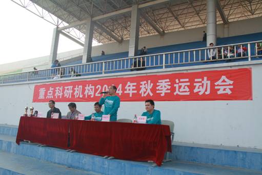 10月23号下午,重点科研机构团委在河南大学金明校区志义体育场举行了2014年秋季运动会,这是重点科研机构团委成立以来首次举办的学生运动会。出席秋运会开幕式的领导有重点科研机构党委书记赵东保教授,副书记杨建军教授,特种功能材料重点实验室副主任胡彬彬副教授,黄河文明与可持续发展中心副主任姬汴生教授及天然药物与免疫工程重点实验室副主任刘东勋教授,运动会由杨建军教授主持,重点科研机构团委负责人邹雪艳、赵美霞及两百多名研究生参加。