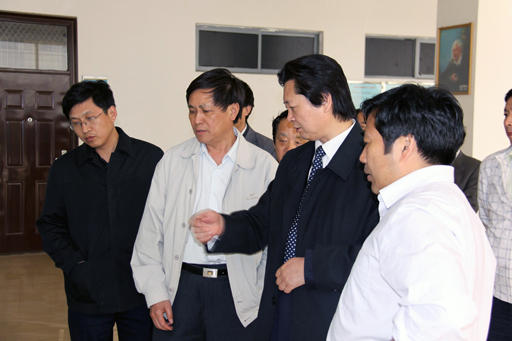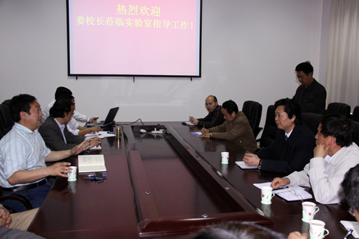 2009年4月15日下午,娄源功校长来到特种功能材料实验室指导调研学习实践科学发展观活动开展情况.