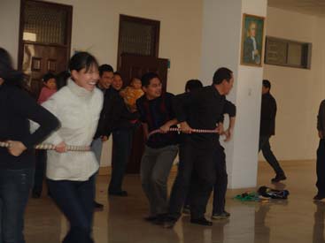 2009年1月10日下午,天气是寒冷的,但是特种功能材料重点实验室的一楼大厅却是热闹非凡,人声鼎沸。为了活跃教职工的业余文化生活,经过实验室工会精心组织的教职工联欢活动正在这里进行。教职工们喊着“锻炼身体、增强体质、增进友谊和交流”的口号,进行了内容丰富、形式多样的比赛。