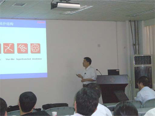 5月5日上午10点半,复旦大学高分子科学系何军坡教授在特种功能材料重点实验室二楼学术报告厅作了题为“活性聚合合成高度支化聚合物”的学术报告,来自特种功能材料重点实验室、化学化工学院和物理工程学院的教师、研究生及本科生百余名参加了报告会。报告会由校特聘教授王华博士主持。