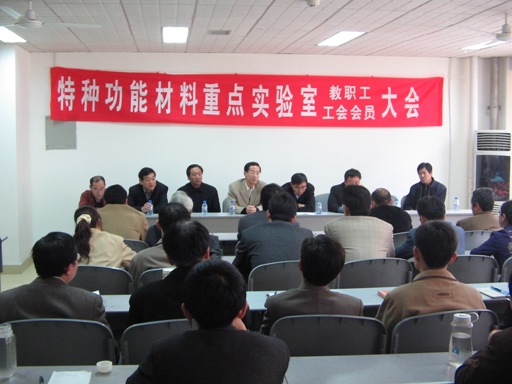 2007年3月29日,特种功能材料重点实验室第一届教职工代表大会暨工会会员大会胜利召开,这标志着教代会制度在特种功能材料重点实验室的建立。副校长宋纯鹏、校工委主席关学增,副主席陈建敏、特邀嘉宾金振声教授等有关领导出席了会议,杨建军副书记主持了会议。