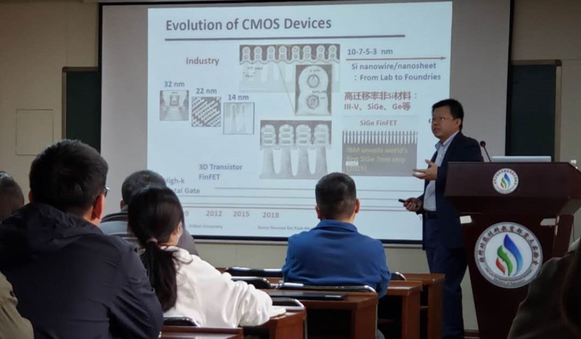 进行学术交流,并在学术报告厅开展了题为“Some Devices for Post-Moore Era: Logic, Memory, and Power Transistors”的精彩报告。本次报告由特种功能材料重点实验室程纲教授主持,学院广大师生及学校理工科单位相关领域的教师与研究生共同参加了此次报告会。