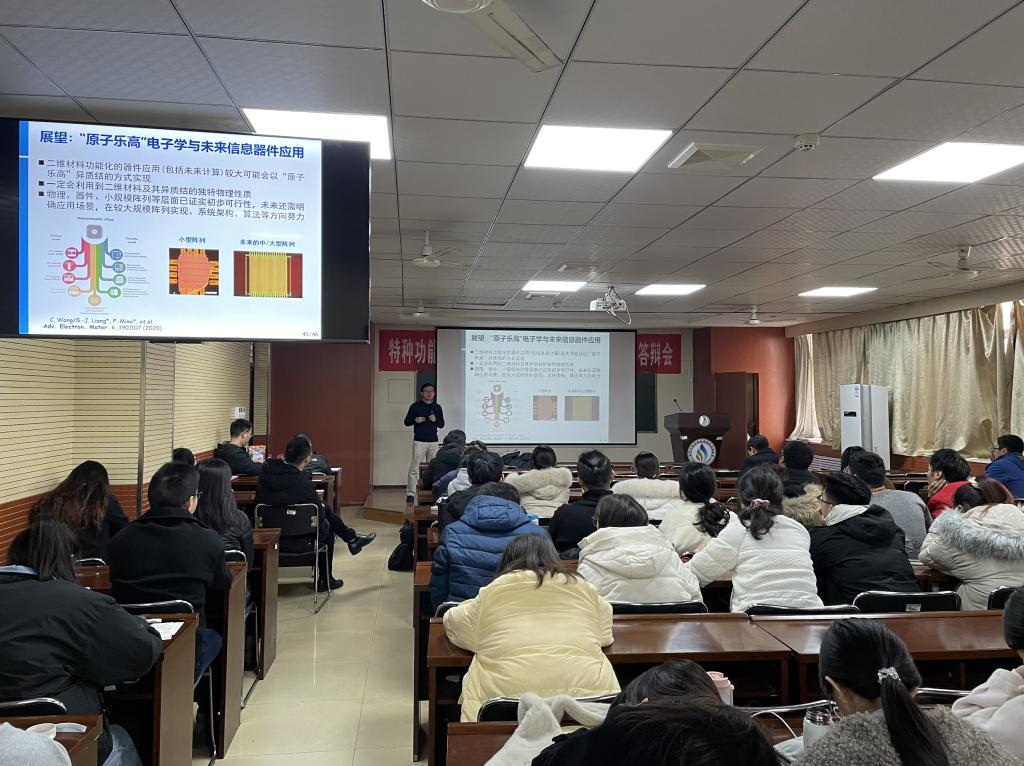 应河南大学特种功能材料重点实验室邀请,南京大学物理学院缪峰教授于12月10日上午在特种功能材料重点实验室211报告厅做了题为“原子乐高”电子学与信息器件应用的学术报告。报告由程纲教授主持并向全校开放,同学们踊跃参与。
