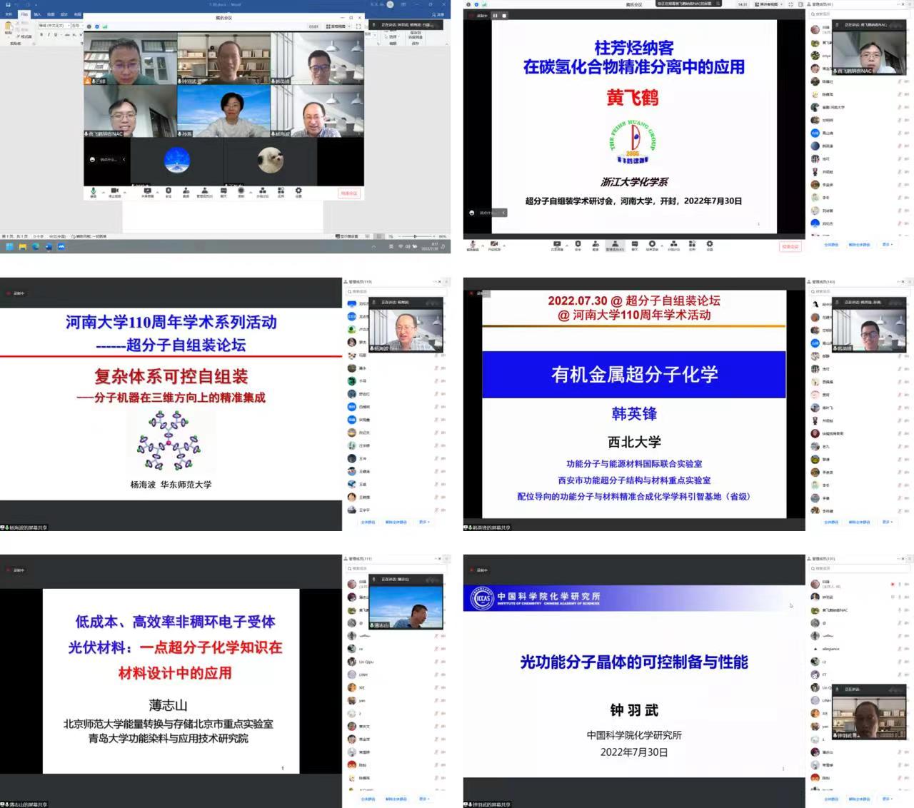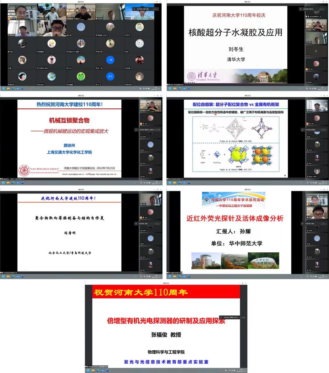 由河南大学材料学院与交叉学科研究院联合举办的河南大学110周年学术系列活动—中原论坛之“超分子自组装”系列报告会分别于2022年7月23日及7月30日成功举行。会议由河南大学材料学院白锋教授和孙燕教授主持,采取线上模式(腾讯会议)进行。