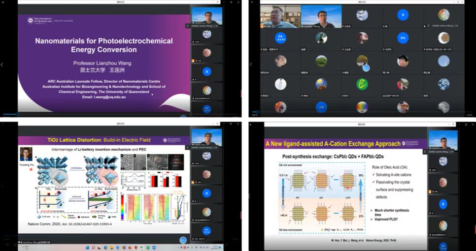 2022年9月8日下午4点,应河南大学材料学院邀请,昆士兰大学王连洲教授做客海外名师大讲堂,以“Semiconductor Nanomaterials for Solar Energy Conversion”为题进行了精彩的学术讲座。材料学院白锋教授担任主持,讲座采取线上模式(腾讯会议)进行,全校相关领域百余名教师与研究生参加了此次讲座。