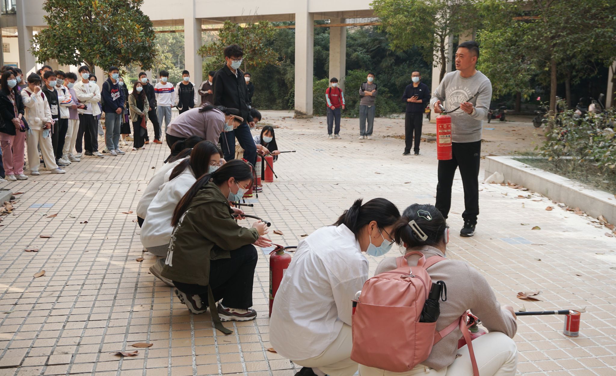 为进一步巩固演练效果,马建军在室外安全区域向参训人员详细讲解了灭火器的使用方法,并在保证安全的情况下,指导大家轮流进行实操体验,现场学习氛围浓厚,达到了预期培训的效果。