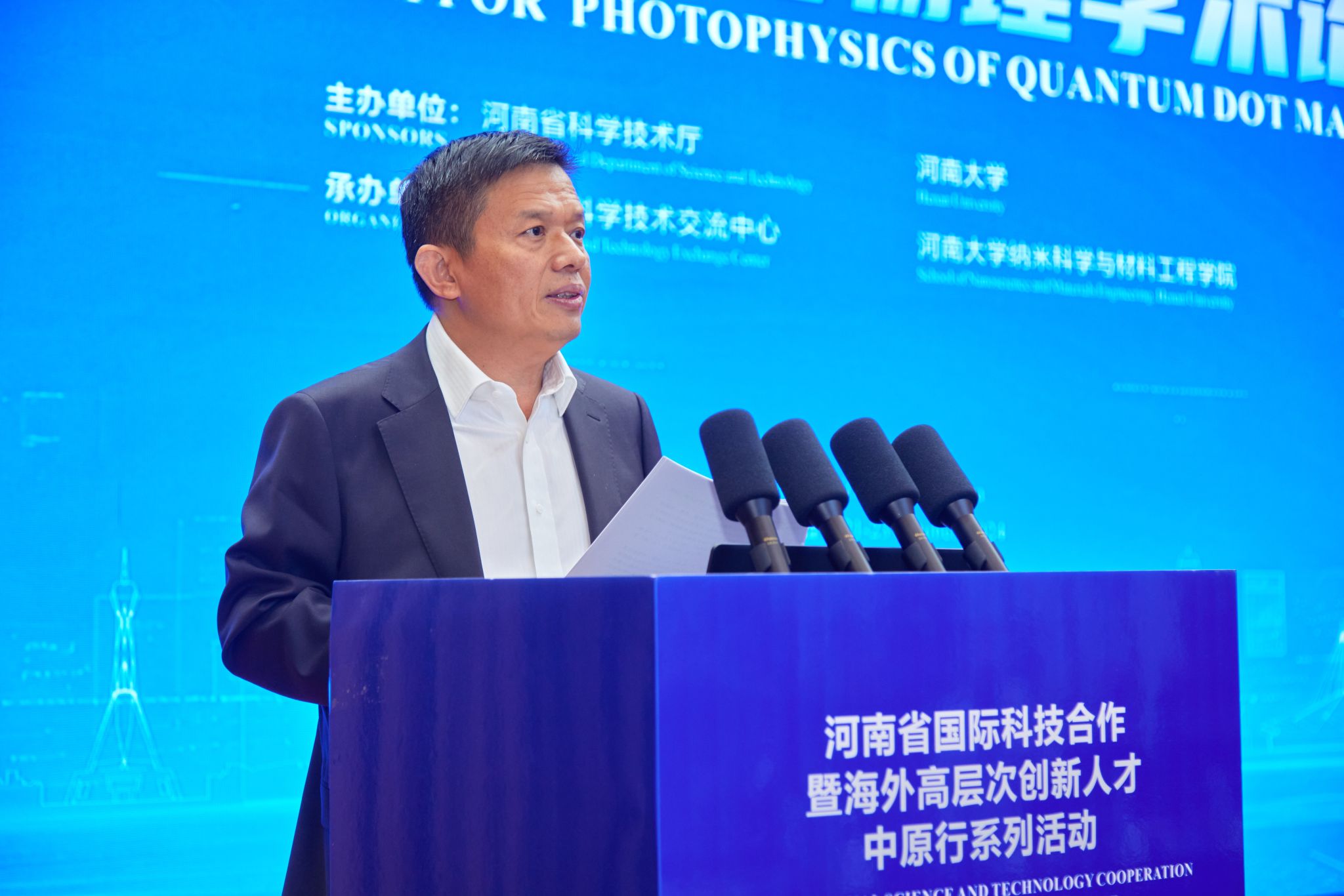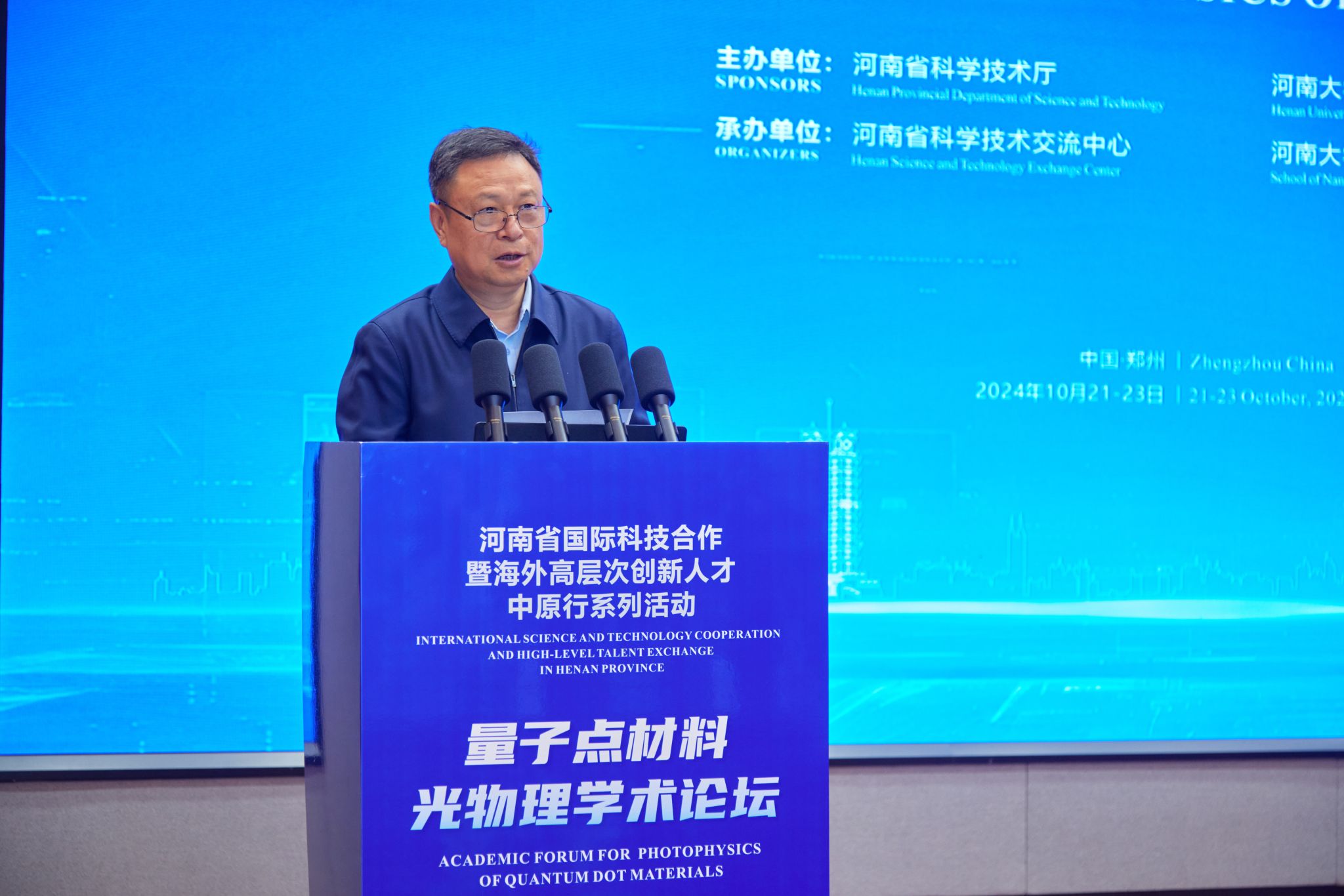 季波在致辞中对出席本次论坛的各位专家表示热烈欢迎,对省科技厅的信任和支持表示衷心的感谢。他介绍了学校的概况、办学治校体系、人才团队及科学研究等方面近年来取得的重要进展。他表示,围绕国家“双一流”、河南“双航母”的办学新战略,河南大学确立了研究型综合性国际化世界一流大学的办学新定位。学校一贯重视国际化建设,积极融入共建“一带一路”教育行动,在国际化办学方面取得了一定成绩,与英国牛津大学等200余个全球高等院校和科研院所建立了合作伙伴关系,构建了国际化开放合作新格局。他指出,量子点材料的研究是学校国际合作的典范,相关团队与国内外专家合作,取得了一系列突破性的原始创新。他希望各位专家畅所欲言,交流最新成果,碰撞灵感火花,促进量子点材料领域的进一步国际交流与合作。