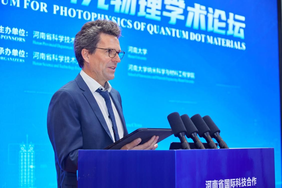 加布里埃尔教授在致辞中结合他自身的学术经历,指出了中欧合作特别是中德合作的重要性。他表示随着科技的不断发展,量子点技术不仅是科学研究的新兴的研究领域,在医学、环境保护、能源等方面也被广泛地使用。国际上相关专业的研究人员要加强学术交流合作,拓宽科研视野,搭建跨国界的技术合作平台,促进创新思维的交流融合,加速科技成果的转化与应用。