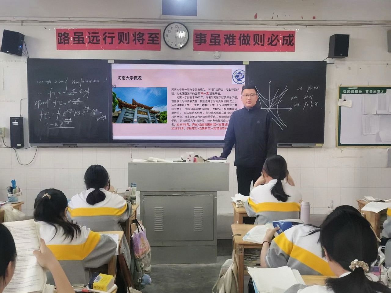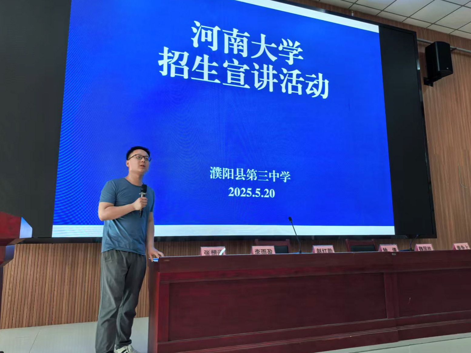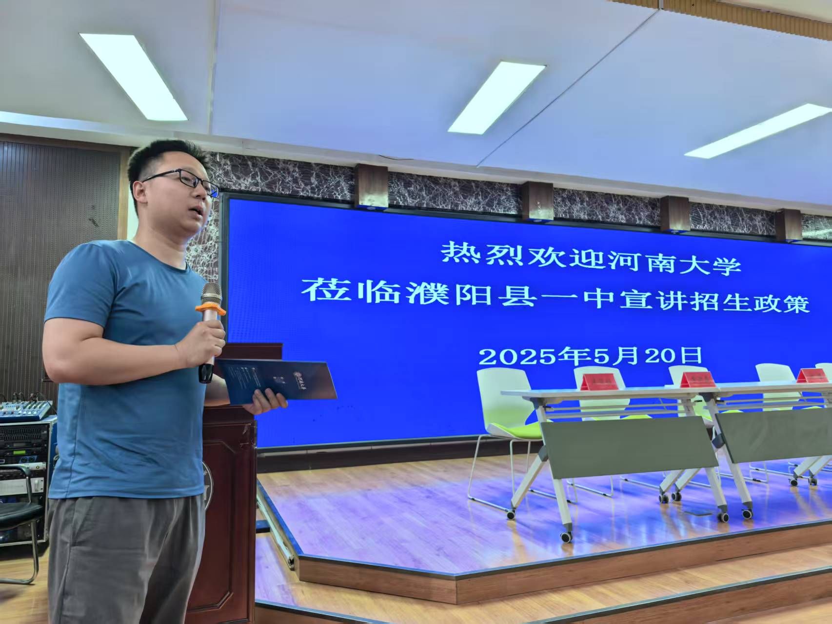 此次集中宣讲是学院2025年度招生宣传工作的核心环节。此前,学院充分发挥招生片区往年生源优势,利用寒假、五一假期分别开展两次招生预宣传,安排濮阳籍在读本科生返回高中开展宣讲,积极推介河南大学。同时,采用线上线下相结合的方式,利用学院官方微信公众号发布招生信息,扩大宣传辐射面。