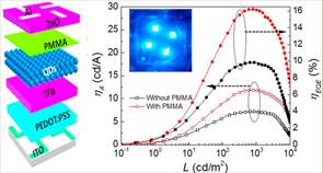 近日,李林松课题组以非闪烁的蓝色量子点为发光层,在提高电子-空穴注入平衡的同时,使得蓝色QLEDs的外量子效率达到了16.2%,并且具有较低的效率滚降。该成果发表在ACS Photonics上(ACS Photonics 2018, 5, 939-946. SCI一区(Top期刊),IF=6.756。)