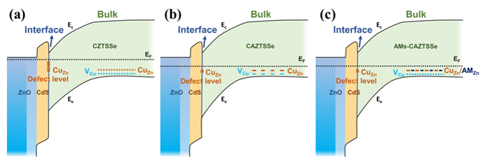 图1未处理、Ag取代及Li,Ag共取代CZTSSe器件的内部缺陷分布