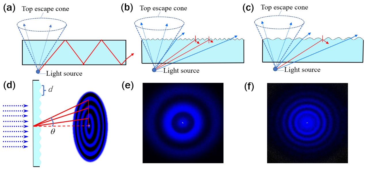 高效蓝光量子点发光二极管(QLED)在显示器和固态照明中的应用仍然具有挑战性。增强光耦合输出是提高蓝光QLED性能最有效的方法之一。我们制作了尺度可控的准周期褶皱结构,这些褶皱结构被成功用作衍射光栅提取衬底/空气界面上的捕获光。在宽高比不变的条件下,准周期褶皱结构可以从纳米尺度调整到微米尺度,优化后的褶皱器件的最大亮度为11769cd/m2,峰值EQE为15.41%。与参考器件相比,EQE提高了49.5%。该工作拓展了提升蓝光QLED器件性能的方法,为该领域的发展提供了新的思路。