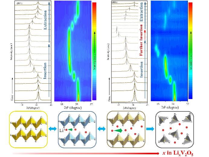 过渡金属氧化物基电致变色材料变色现象的发生主要是基于外加电场下离子和电子的共同注入和抽出过程。深入理解离子传输路径与电化学反应特性和电致变色性能之间的构效关系对高性能电致变色材料的设计与构筑至关重要。基于此,电致变色课题组借助一系列原位表征技术和理论分析,详细探索了典型层状V2O5电致变色材料中不同离子传输路径下离子的传输行为和电致变色性能。通过改变嵌入V2O5中的Li+的含量调节V2O5的层间距,改变离子传输路径,随后探索不同层间距下的电化学行为和电致变色性能,成功构筑离子传输路径与电致变色性能间的构效关系。为不同电化学反应阶段电致变色性质的演变提供了理论依据。对层状V2O5薄膜中的离子输运行为提供了重要的认识,为开发和设计优质层状TMO电致变色材料提供了基础理论指导。该成果以Regulating the Ion Transport in the Layered V2O5 Electrochromic Films with Tunable Interlayer Spacing为题发表在期刊Advanced Optical Materials上(//doi.org/10.1002/adom.202400459)。即时足球比分网 | 实时赛事结果更新