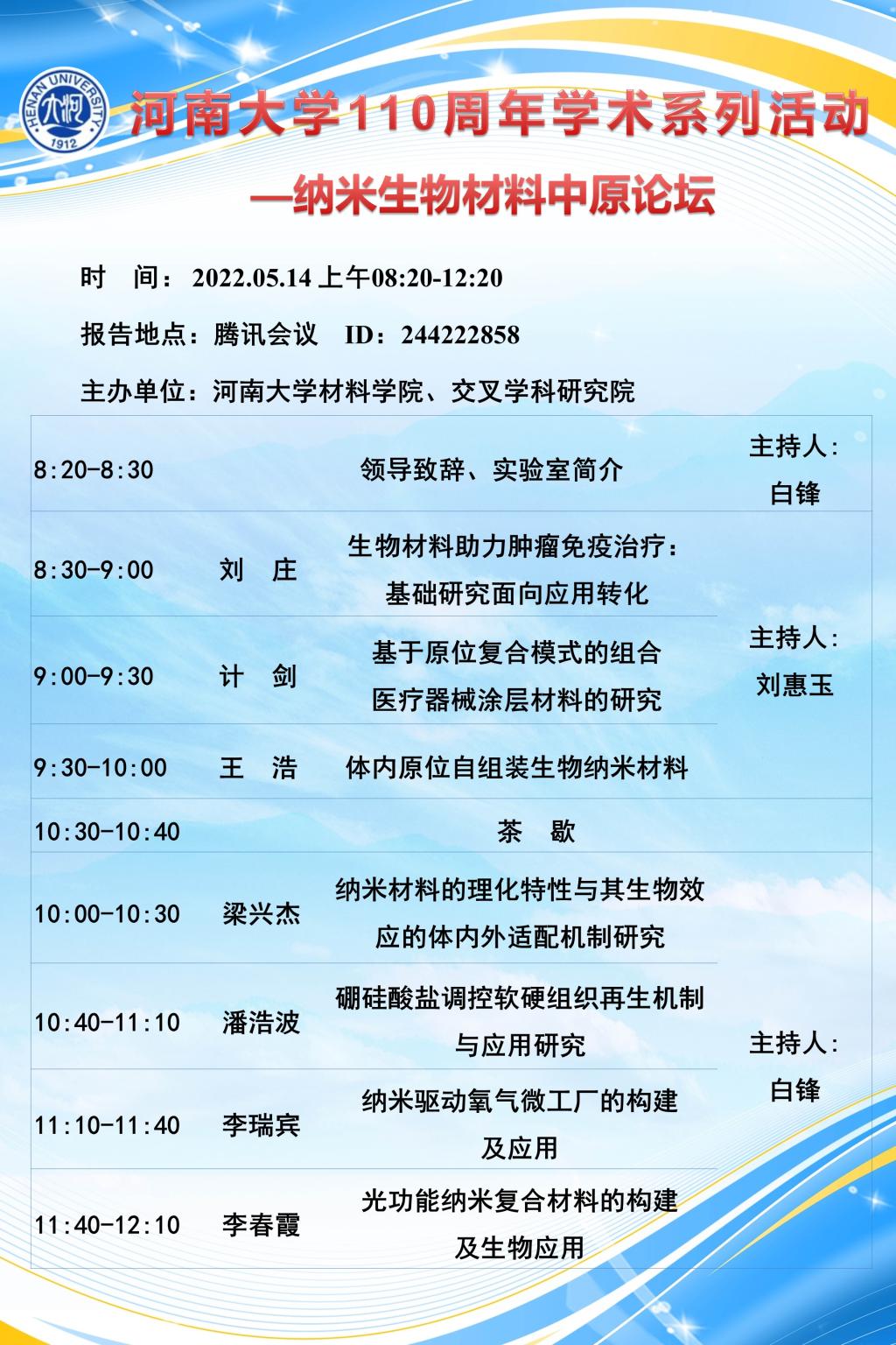 纳米生物材料中原论坛(时间5.14)