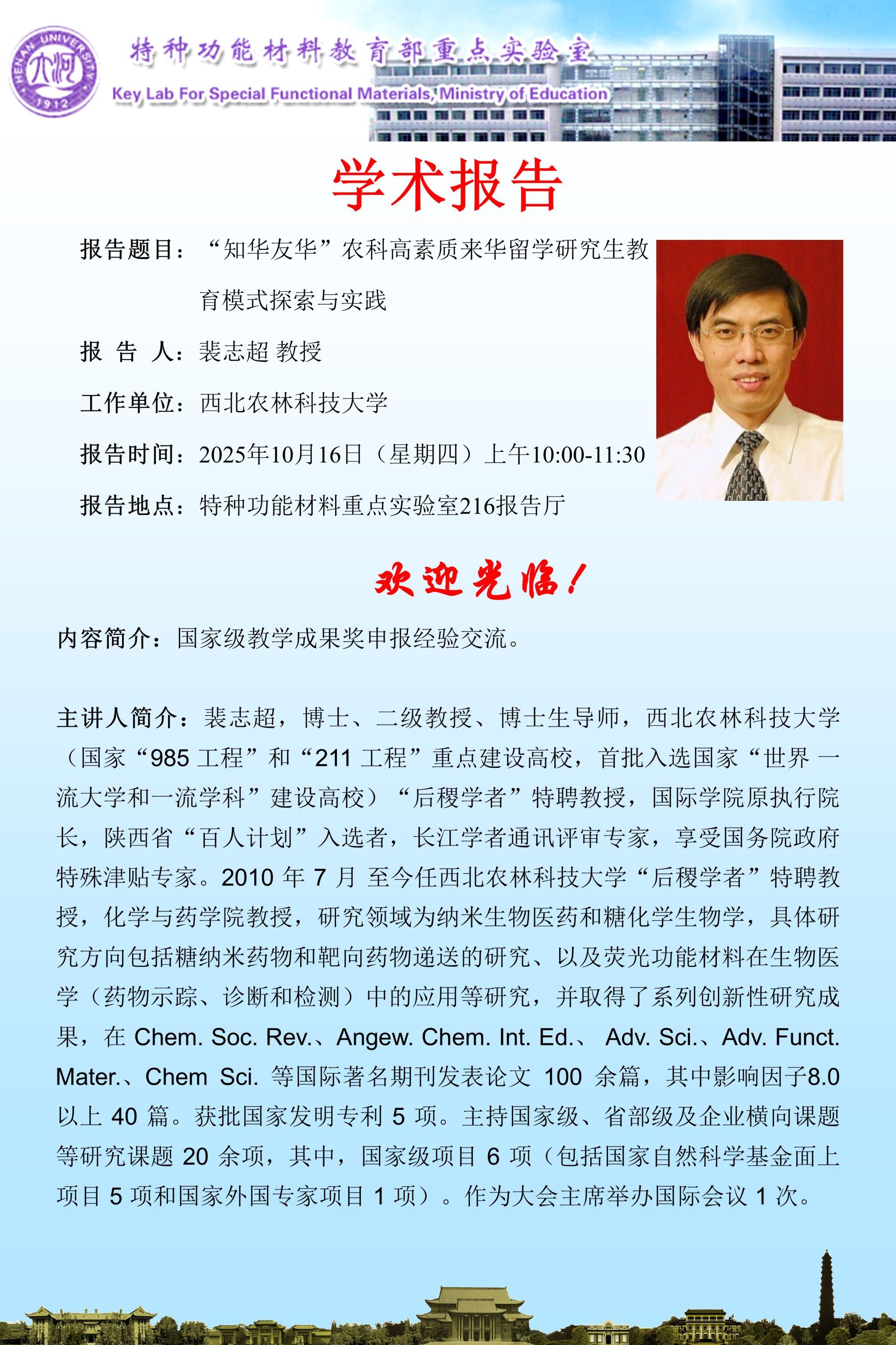 【上一篇】:薛剑耿:有机与纳米光电功能材料与器件——从能源、信息到生命健康(时间11.21)