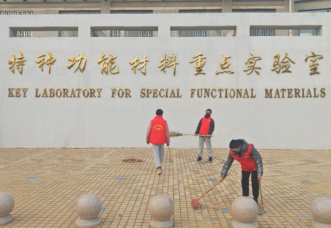 图 学生志愿者在清扫卫生