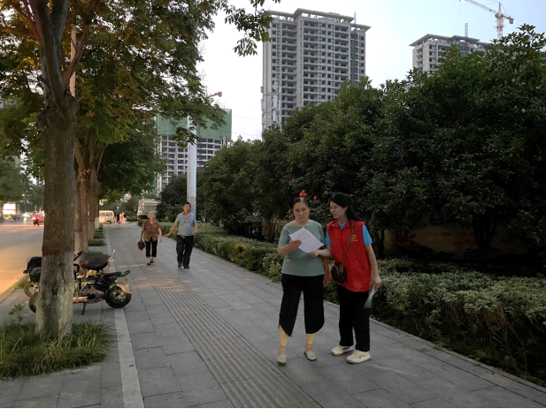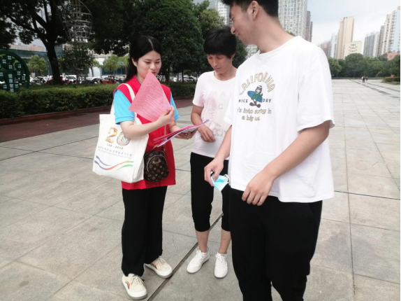 傍晚十分,空气里褪去一天的炎热,实践团队决定走上街头,扩大宣传范围,继续发放宣传册。