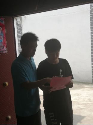 7月15日,我正式开始了此次“资助政策乡村行”宣传。通过在村内走访了解,我发现大多数居民对于国家资助政策了解甚微,只有家中有大学生的家庭才有一定的了解。走访过程中,我向居民介绍了国家的资助政策以及河南大学学生资助政策,对于他们不理解的资助政策,我逐项进行详细解释。其中,也有明年参加高考的学生,我向他们介绍自己在大学中是如何受到国家与高校资助政策的帮助,并以河南大学资助政策为例向他们解答了有关高校资助政策的疑问。