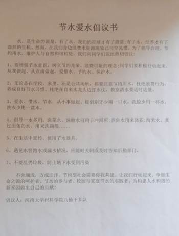 团队制作的节水爱水倡议书及宣传海报