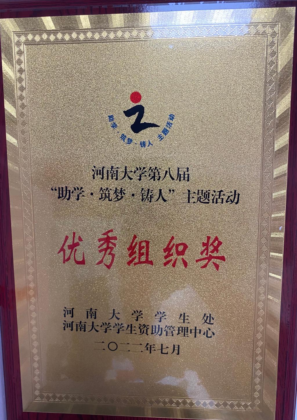 积极组织学生参加河南大学第八届“助学•筑梦•铸人”主题活动,并在本次活动中荣获“优秀组织奖”,多名同学获奖。
