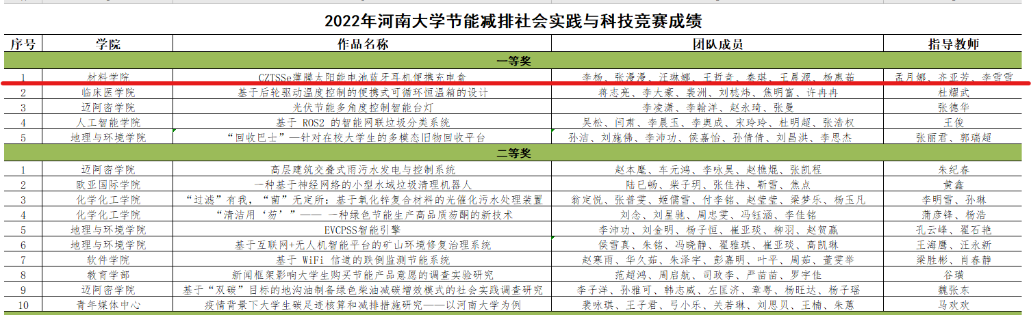 即时比分网 学子在2022年河南大学大学生节能减排社会实践与科技竞赛中获一等奖