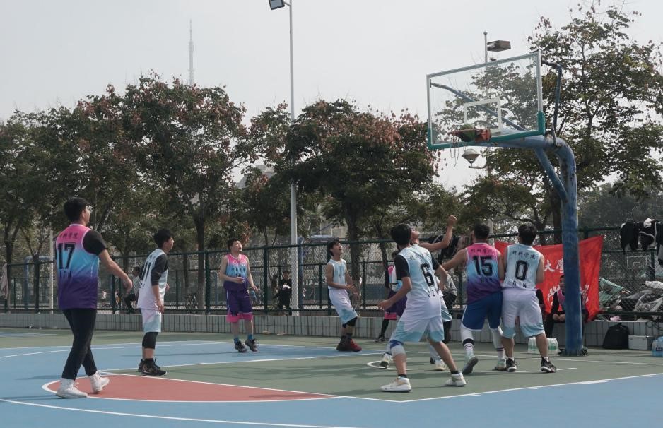 赛前,各球队成员有序进场,互相握手致意。随着裁判的一声清脆哨响,本科生队伍与2020级研究生队伍的比赛率先开始。比赛中,每个球员都不遗余力,竭尽所能,团结一致组织每一次进攻,咬紧牙头争取每一次得分。他们坚持拼搏的精神深深地感染了现场观看比赛的同学,啦啦队欢声雷动,场上场下打成一片,围观同学的激情呐喊为场上的球员们注入了新的活力,使他们以最饱满的热情和最专注的态度投入到鏖战之中。