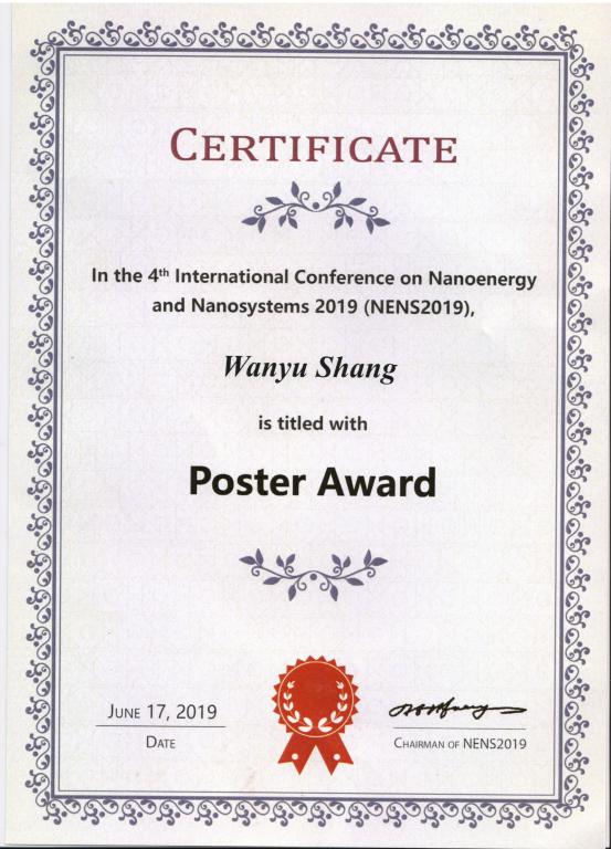 Wanyu was awarded a Poster Award at NENS 2019 Congratulations, Wanyu! |